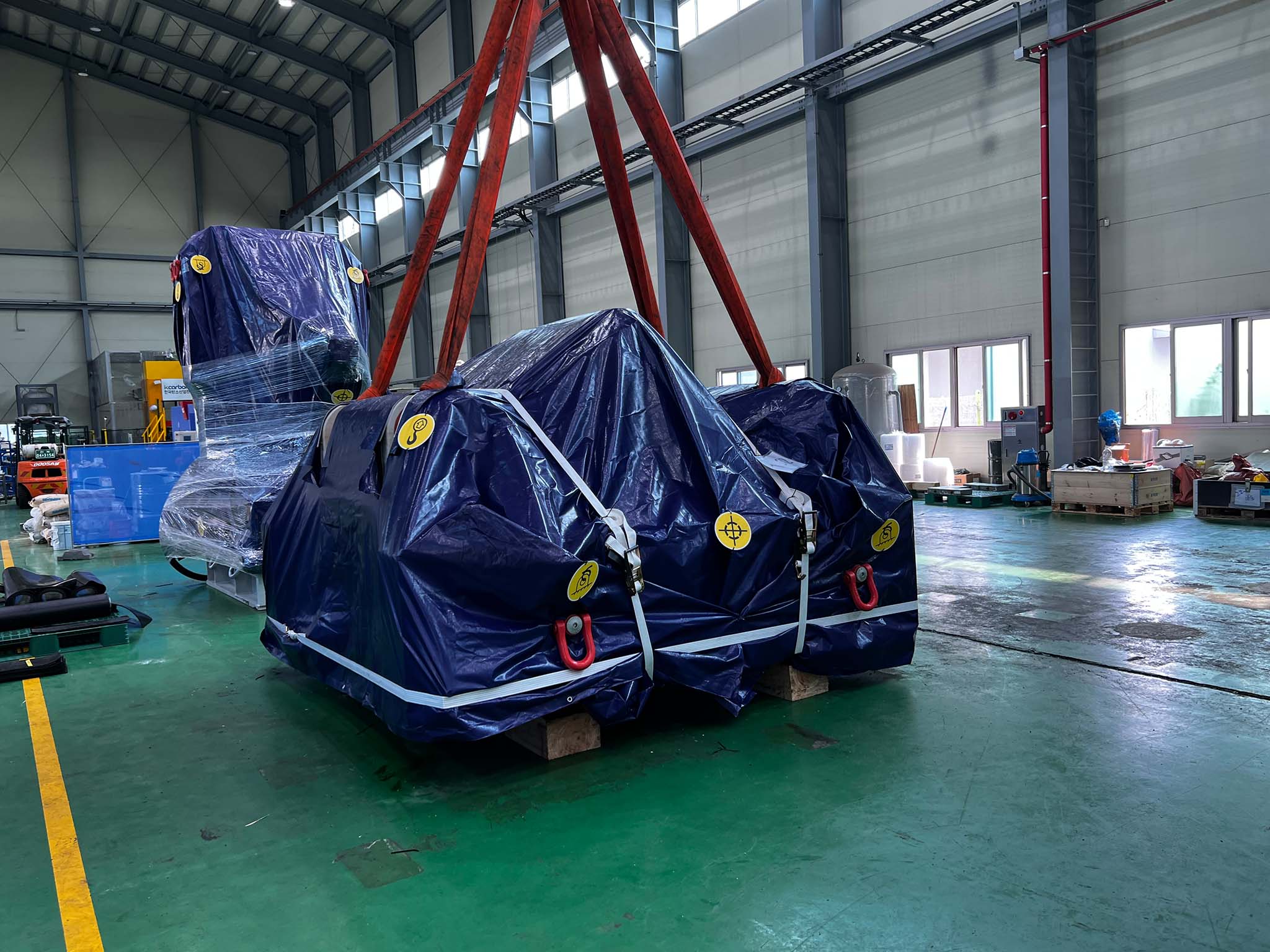 En el marco de un exigente proyecto logístico, se transportó una máquina de fundición a presión Frech GDK 4100-185 S usada desde Corea a Alemania. La máquina, equipada con la tecnología de automatización más moderna, entre la que se incluyen la máquina de pulverización de moldes Wollin PSM 4 F y el robot ABB IRB 6700 Foundry Plus, tiene un impresionante peso total de 285 toneladas.