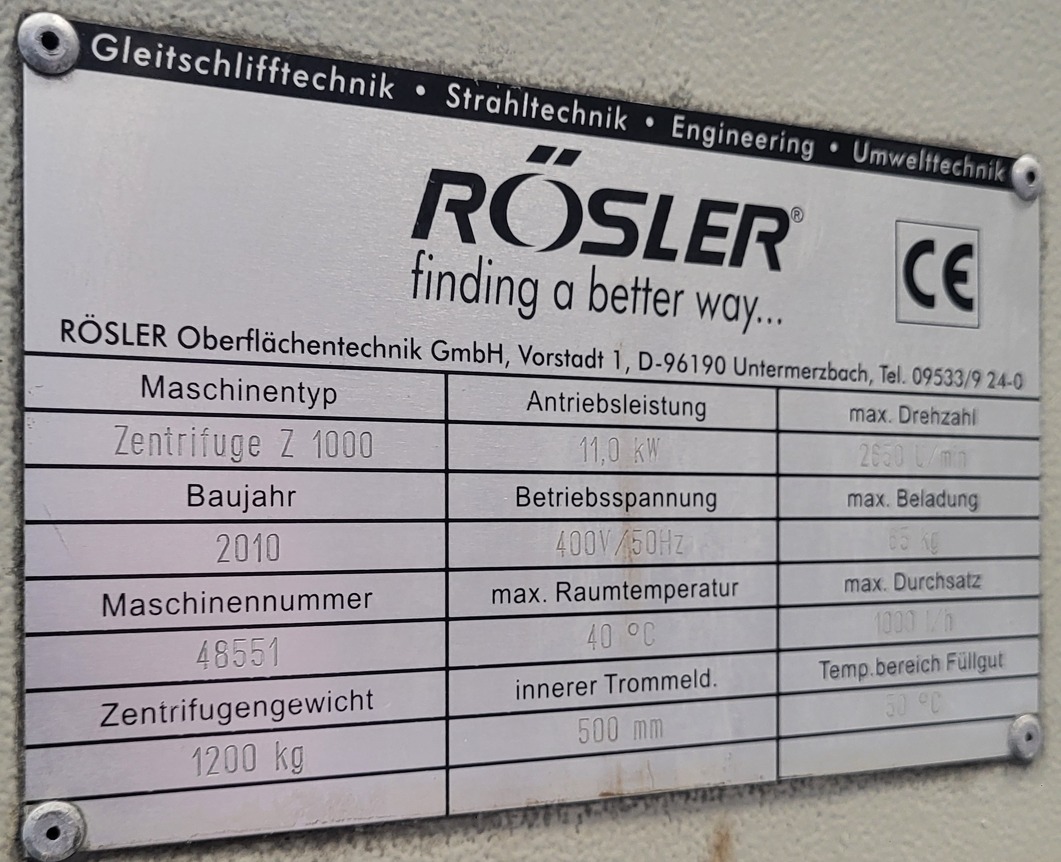 Centrífuga Rösler Z800 GA2235, usada
