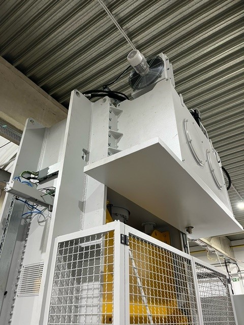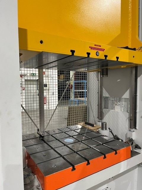 Fuerza nominal ajustable con precisión de 160 a 800 kN Amortiguación del impacto de corte en la parte inferior, hasta 15 mm antes del punto muerto inferior. Ajustable entre 100 mm y 300 mm del cilindro por encima del tablero de la mesa Carga excéntrica sólo en combinación con compensación paralela hidráulica