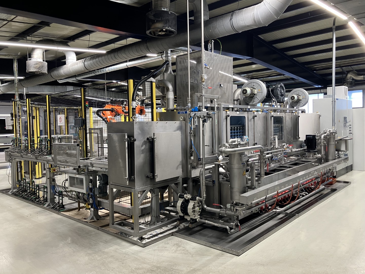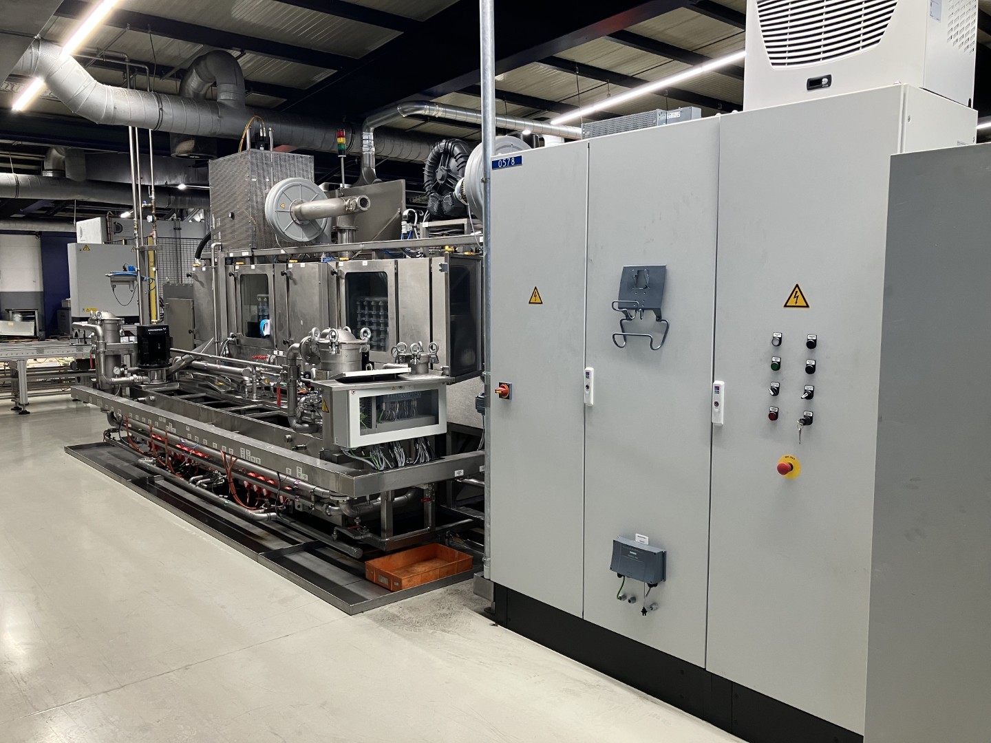 Sistema de limpieza continua S 60229/2 Limpieza a alta presión - limpieza - aclarado - secado - refrigeración Con sistema de circulación de portadores de mercancías Diseño de la máquina: completamente en acero inoxidable